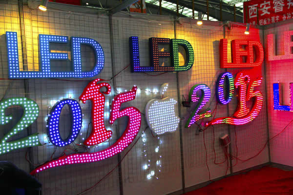 发光字。单色发光字是由打好孔的字壳,和单色外漏灯组成。七彩外露发光字是由打好孔的字壳,和七彩外漏灯,七彩控制器构成,打灯之后可以七彩渐变。全彩外露发光字由打好孔的字壳,和全彩外漏灯,全彩控制器构成,利用专业软件制作程序文件置入SD卡,SD卡插入全彩控制器,打灯之后外漏发光字,可以播放FLASH动画,人物动画,效果档次极高。