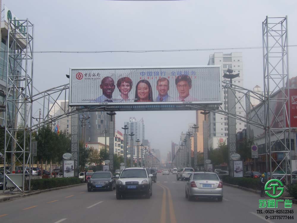 大型跨街广告牌又名大型跨路广告牌、跨街龙门架,是一种街头广告形式,常见于繁华街头,贯穿左右,展现量巨大,广告效益大;是提升企业形象,提高品牌价值好的方式。